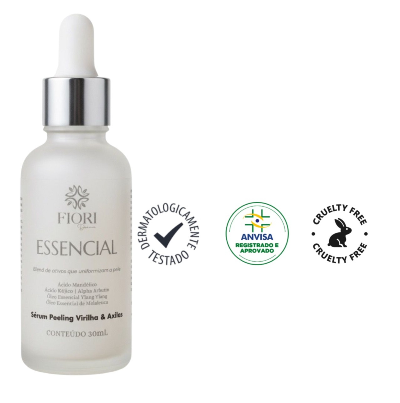 Formulado especialmente para regiões delicadas como virilha e axilas, o Sérum Peeling Fiori Derma combina tecnologia e ingredientes naturais para uniformizar o tom da pele, melhorar a textura e estimular a renovação celular, sem agredir.