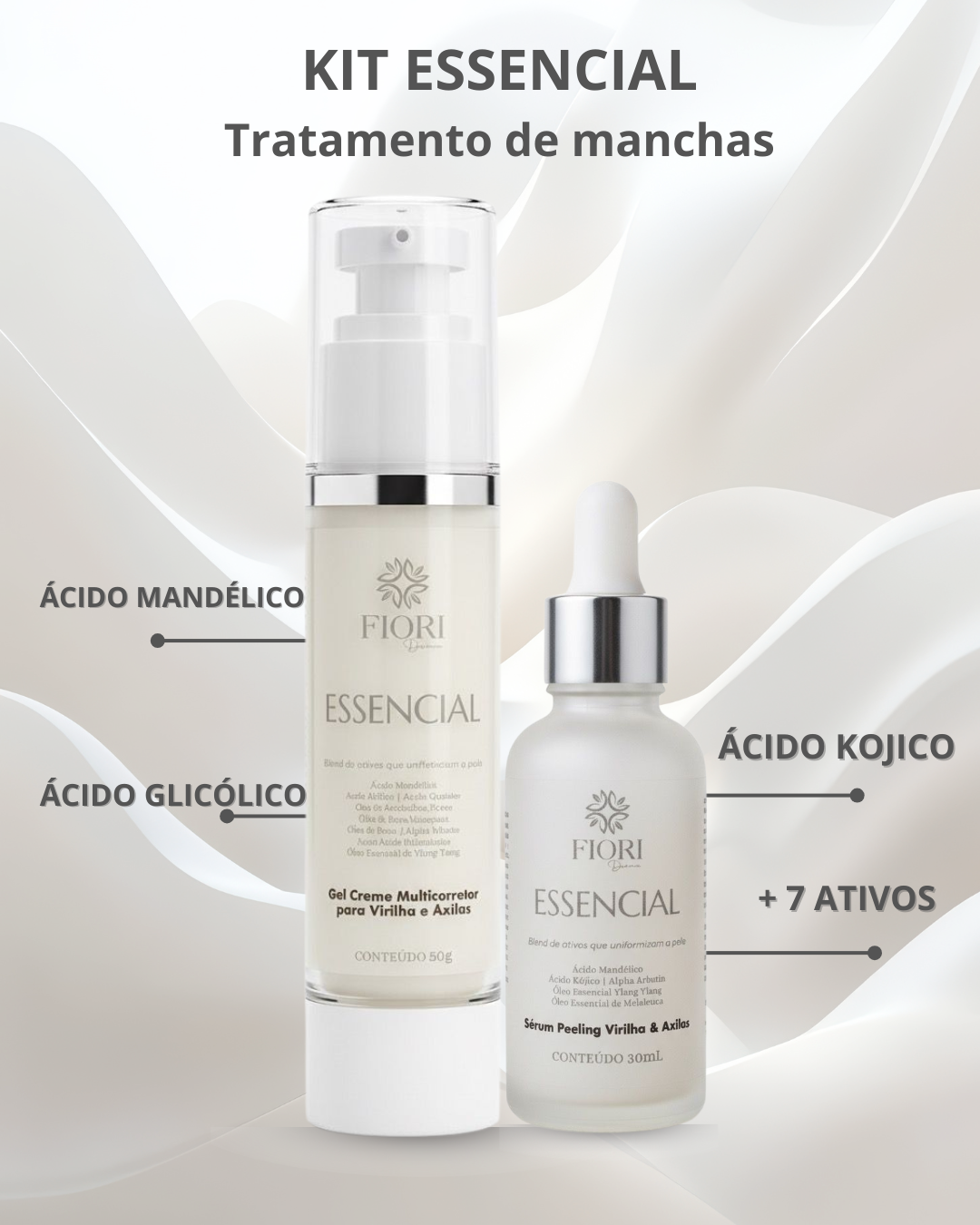 Nosso Kit Clareamento Essencial foi especialmente desenvolvido para tratar as manchas em diferentes regiões (incluindo áreas sensíveis como virilha e axilas), uniformizando o tom da pele e devolvendo a autoestima que todas merecem.
